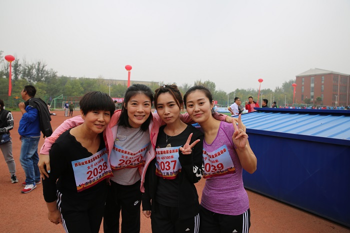 莊嚴的升旗儀式結束后,開始進行各種才藝的展示,有節(jié)奏體語、空竹、手拍鼓、太極等精彩的表演。緊接著,激動人心的項目比賽開始了。在集體跳繩、同心協(xié)力、拔河、障礙賽中,運動員們都揮灑著汗水,為總公司爭取著榮譽。運動會的壓軸項目是4×100米接力賽,女子組在以預賽小組第一名的成績挺進決賽之際,選手張菁蕊由于用力過度,大腿嚴重抽搐,無法參加決賽,劉立新臨危受命,接起了決賽最后一棒的重任。決賽中領先的劉立新在沖刺時連續(xù)兩次跌倒,但仍帶著傷痛沖過了終點。當領導關切的詢問她的傷勢時,她卻說:本來第一的,拖咱們的后腿了。此時此景,成績已無關緊要,那根小小的接力棒,傳遞著我們公司的團結和力量,整個運動場變成了永豐總公司人展現(xiàn)永不言敗精神的舞臺。