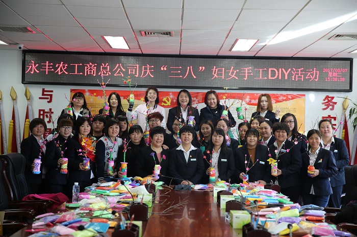 陽春三月,微風(fēng)拂面,為慶祝三八婦女節(jié),豐富女員工的業(yè)余文化生活,活躍工作氛圍,增強(qiáng)大家的積極性和創(chuàng)造性。2017年3月7日,永豐農(nóng)工商總公司黨總支部副書記、副總經(jīng)理劉迎春帶領(lǐng)總公司及各二級(jí)公司女同志參加了“慶三八婦女手工DIY活動(dòng)”,獲得了女員工們的積極響應(yīng)和參與。
