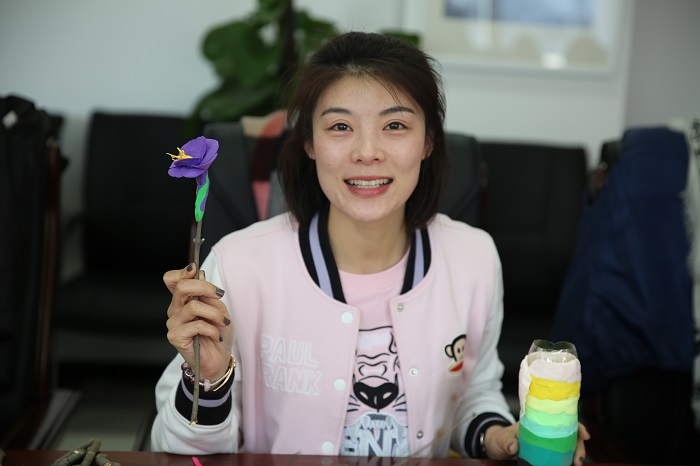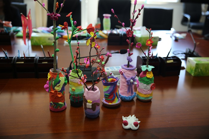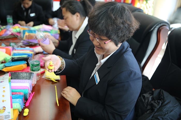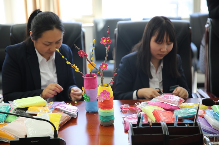活動(dòng)一開始,劉總用通俗易懂的語言講解了手工DIY花瓶的基本技巧。DIY手工制作的材料是用廢棄的礦泉水瓶,被修剪下來的樹杈制作的。女員工們邊學(xué)邊練,現(xiàn)場的氣氛非?;钴S,大家充分的開動(dòng)想象力,動(dòng)手制作各式各樣的花瓶及花枝。很快這些廢棄物在大家的手中變廢為寶,各式各樣漂亮的花瓶呈現(xiàn)在了大家的面前,大家的臉上都洋溢著開心的笑容。