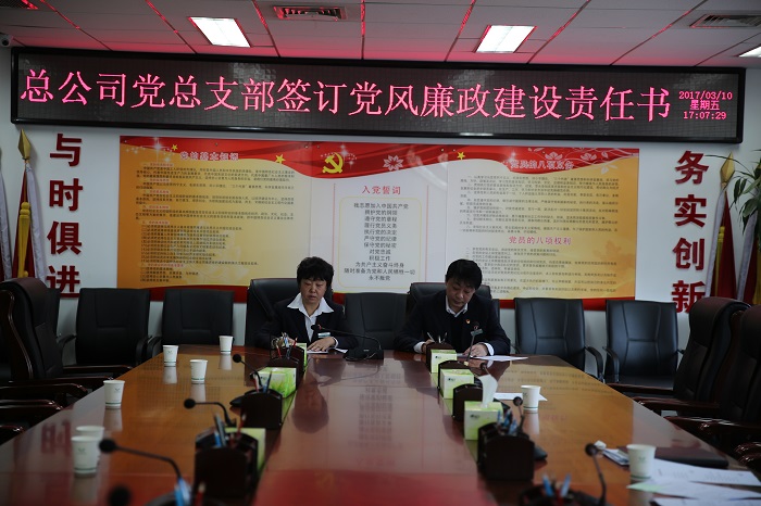 為了深入推進(jìn)總公司黨風(fēng)廉政建設(shè)和反腐敗工作,總公司黨總支部書(shū)記與各二級(jí)公司黨支部書(shū)記簽訂了領(lǐng)導(dǎo)干部黨風(fēng)廉政建設(shè)責(zé)任書(shū)。