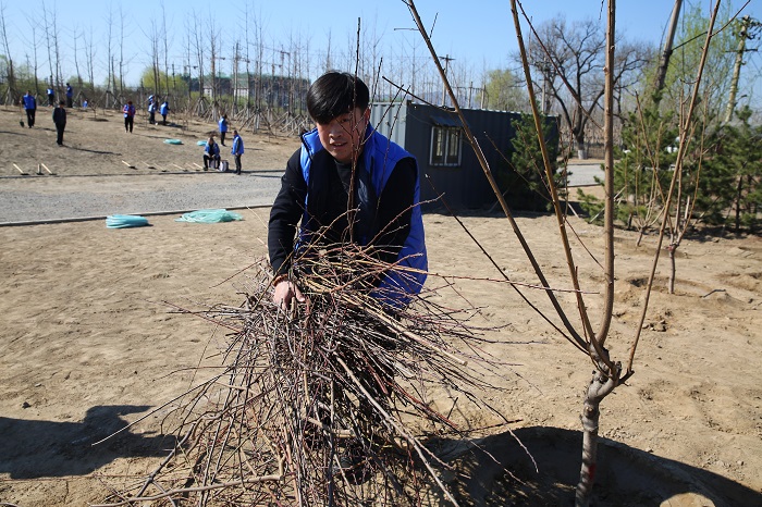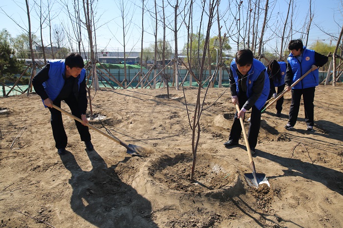 護(hù)綠活動(dòng)中,青年志愿者們自發(fā)結(jié)組,各司其職,有的揮鍬填土、有的清除雜草、有的撿拾枯枝。經(jīng)過一個(gè)多小時(shí)的奮戰(zhàn),84株樹苗的回填及周圍環(huán)境的清理工作很快地完成了。借用習(xí)總書記3月29日參加首都義務(wù)植樹活動(dòng)時(shí)說的話:“培養(yǎng)熱愛自然珍愛生命的生態(tài)意識(shí),植樹造林,種下的既是綠色樹苗,也是祖國的美好未來。全社會(huì)要形成生態(tài)建設(shè)的共識(shí),綠化的合力,把綠化做好,一年接著一年干,一代接著一代干,擼起袖子加油干。”