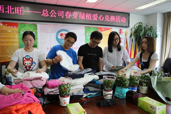 為宣傳綠色理念,讓環(huán)保意識深入到工作生活中,用“舊書舊衣”兌換綠植,將節(jié)約的理念化作奉獻愛心的實際行動,2017年4月27日,總公司志愿服務(wù)隊積極響應(yīng)西北旺地區(qū)志愿聯(lián)合會的號召,開展“V藍”西北旺-總公司春芽綠植愛心兌換活動。