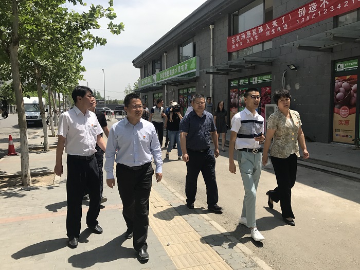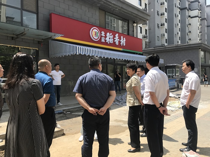 2017年6月5日,海淀區(qū)商委領導余主任在鎮(zhèn)黨委副書記尹剛的陪同下,再次來到六里屯社區(qū)檢查便民服務站商業(yè)項目建設進展。