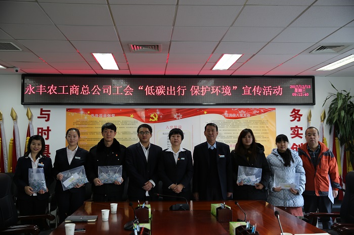 為充分發(fā)揮工會(huì)聯(lián)系黨與群眾的橋梁作用,進(jìn)一步加強(qiáng)總公司工會(huì)建設(shè)。2017年12月13日,永豐農(nóng)工商總公司工會(huì)將現(xiàn)階段工會(huì)建設(shè)與北京市秋冬季環(huán)境保護(hù)和空氣治理工作相結(jié)合,旨在宣傳環(huán)境保護(hù)意識(shí),提倡綠色出行理念。在總公司207會(huì)議室組織召開(kāi)了主題為“低碳出行 保護(hù)環(huán)境”宣傳活動(dòng)??偣军h總支部副書記劉迎春、總公司工會(huì)主席郭東升及各二級(jí)公司工會(huì)負(fù)責(zé)人參加了此次活動(dòng)。
