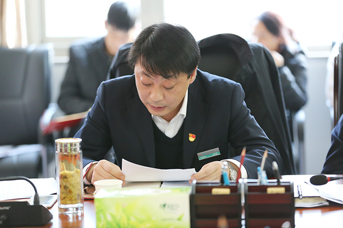 會議第四項是2017年度總公司黨總支部黨代表述職及黨員評議工作,總公司黨代表李建濤、劉迎春、王強分別就理論學(xué)習(xí)方面、黨代表履職情況、日常工作開展情況、問題與不足等方面向黨員們進行了述職。1名黨代表采取書面形式述職,述職結(jié)束后,到會的50名黨員對4名黨代表進行了民主測評。