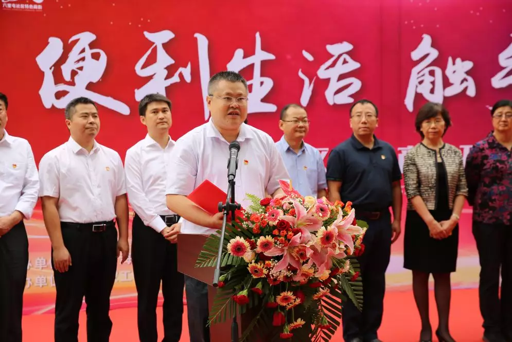 (趙瑩秘書(shū)長(zhǎng)、陳雙副區(qū)長(zhǎng)、趙小云書(shū)記、孫景龍副鎮(zhèn)長(zhǎng)共同鳴鑼開(kāi)街)