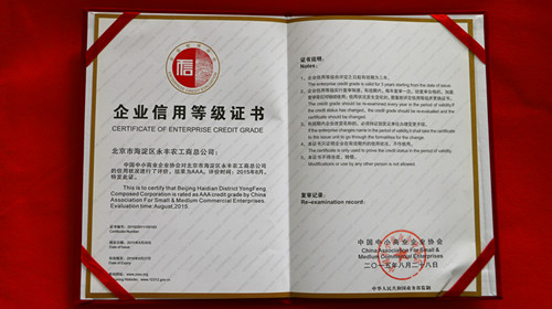 熱烈慶祝我公司獲得由中國中小商業(yè)企業(yè)協會頒發(fā)的企業(yè)信用AAA級證書