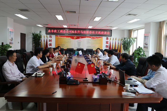2016年5月11日星期三下午,永豐農(nóng)工商總公司邀請(qǐng)海淀區(qū)東升鎮(zhèn)馬坊股份社相關(guān)領(lǐng)導(dǎo)在總公司會(huì)議室召開工作交流座談會(huì)。出席本次會(huì)議的有:東升鎮(zhèn)馬坊股份社董事長楊浩、總經(jīng)理梁衛(wèi)東、黨總支副書記安政華及班子成員;永豐農(nóng)工商總公司董事長吳茂強(qiáng)、總經(jīng)理李建濤、副總經(jīng)理劉迎春以及其他班子成員。會(huì)議由永豐農(nóng)工商總公司總經(jīng)理李建濤同志主持。